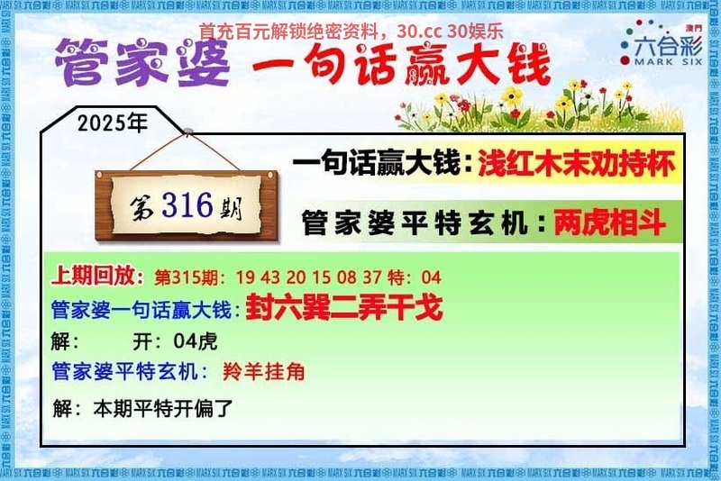 316期:单╠羊猪兔鸡╣双╠马狗猴虎╣开:马24准 |